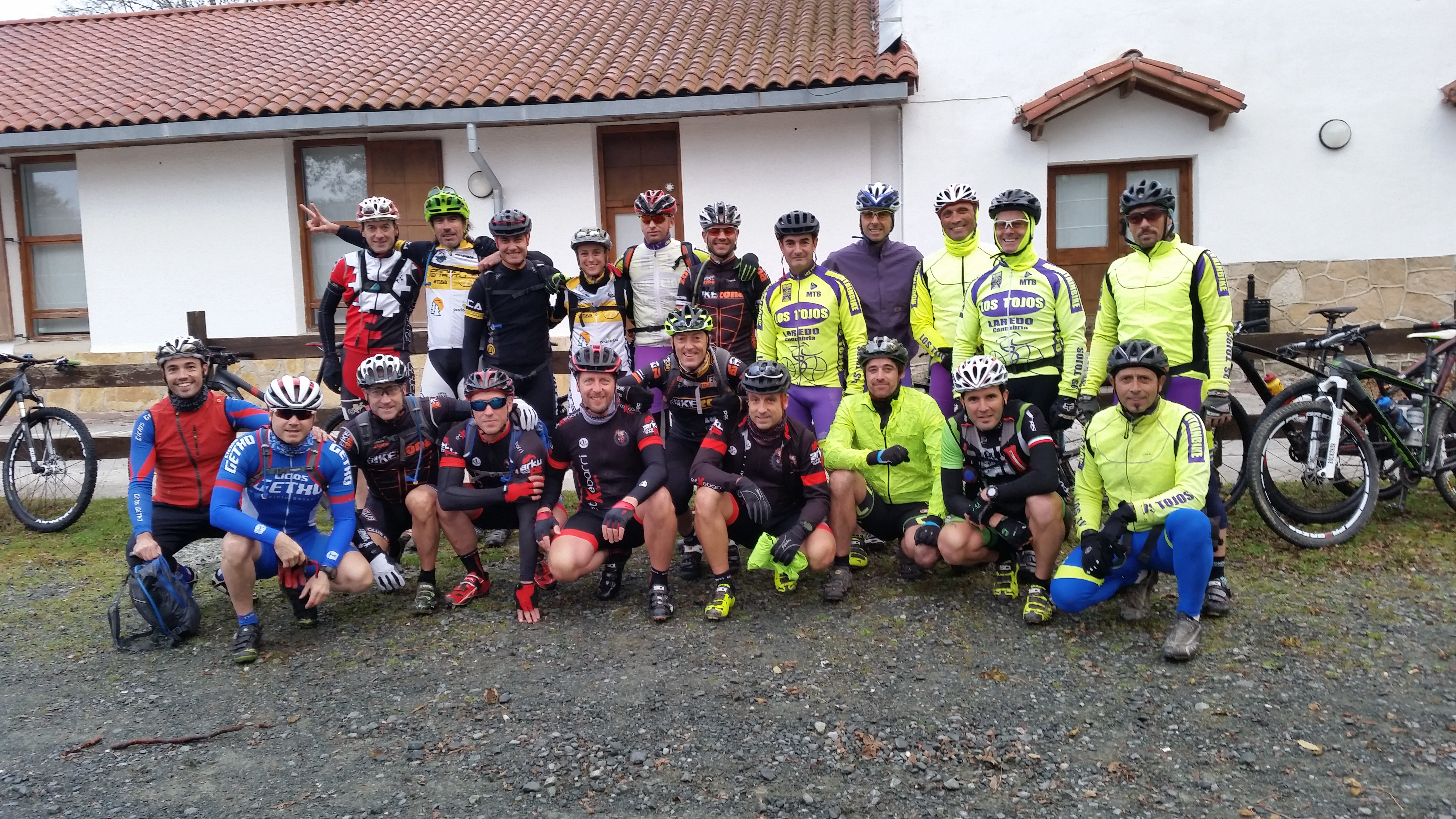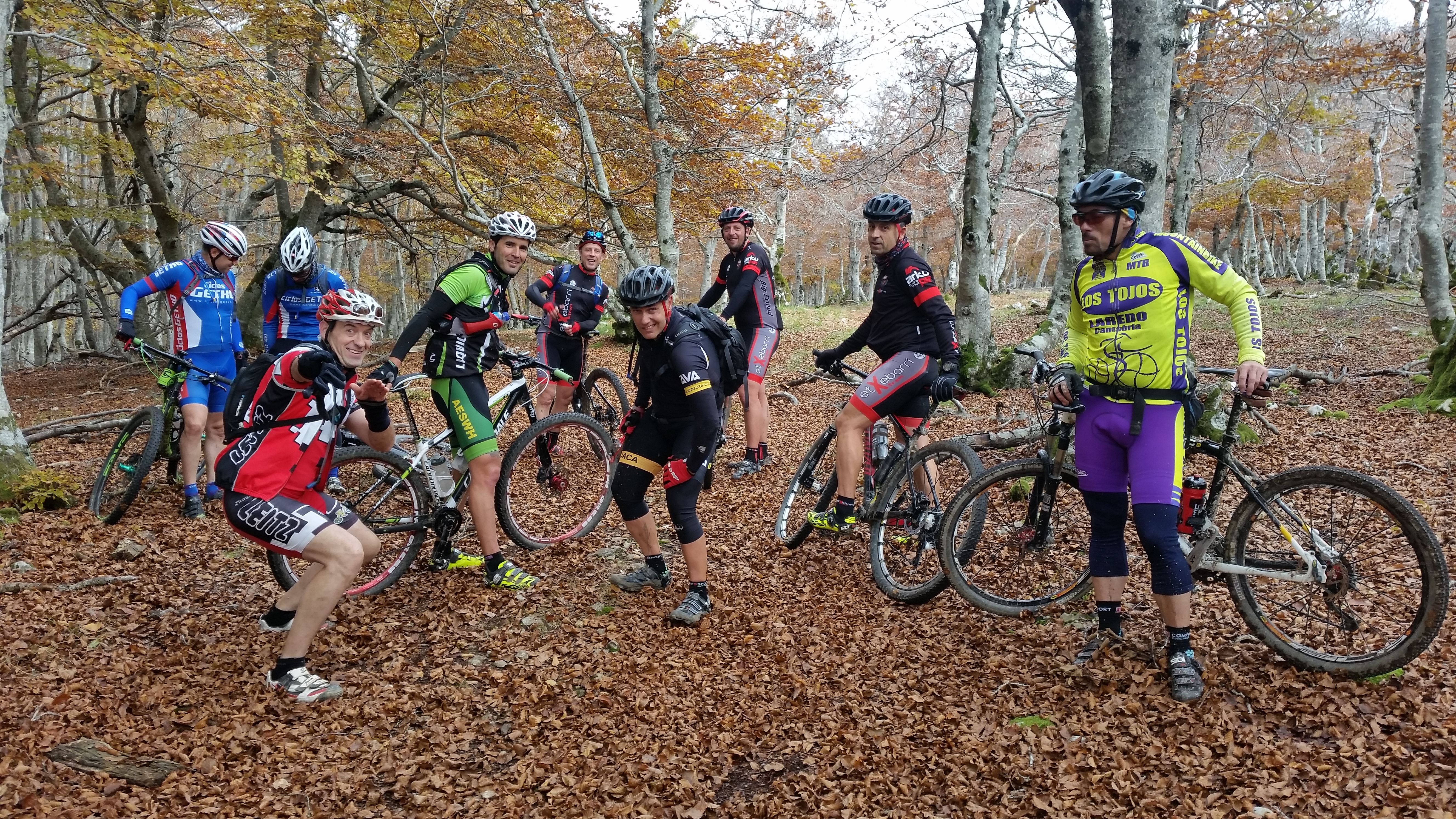 La respuesta a la kdada ha sido magnífica y al final nos juntamos 10 bikers de Bilbao, 8 de Laredo, 3 de Jaca y uno de Andoain. El grupo de bikers de Bilbao lo formaban integrantes del Club Bikezona, Etxebarri Xtrem, Ciclos Getxo y el crack David Santurtzi. Los 8 bikers de Laredo pertenecen al Club Mtb Los Tojos y los 3 bikers de Jaca al Club Bttava Bikefriendly. Por último Iñigo Espín un fenómeno de Andoain.