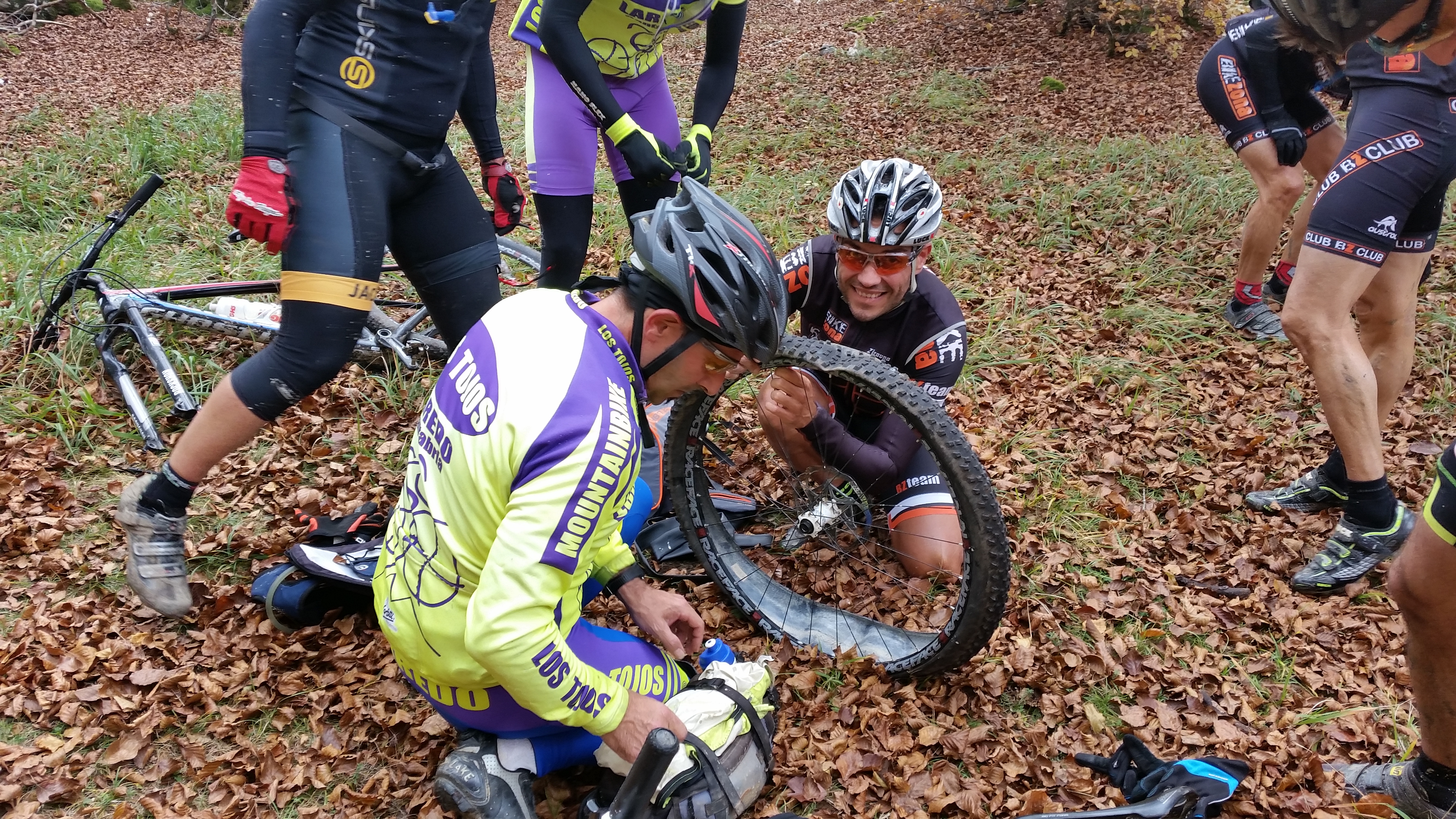 Antes de llegar al punto más alto…..¡pinchazo!. Iván pincha y tenemos que parar a reparar. No perdemos mucho tiempo, pero parte del grupo aprovecha para descansar y reponer fuerzas.