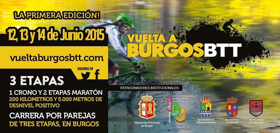 El pasado 12, 13 y 14 de Junio de 2015 se celebró la primera edición de la Vuelta a Burgos BTT, carrera federada bajo el amparo de la RFEC. Se trata de una carrera por parejas con diferentes categorías, Elite, Master 30, Master 40, Master 50, Femenina única y equipo Mixto. Se rige según reglamento UCI y consta de una etapa contrarreloj y dos etapas maratón.