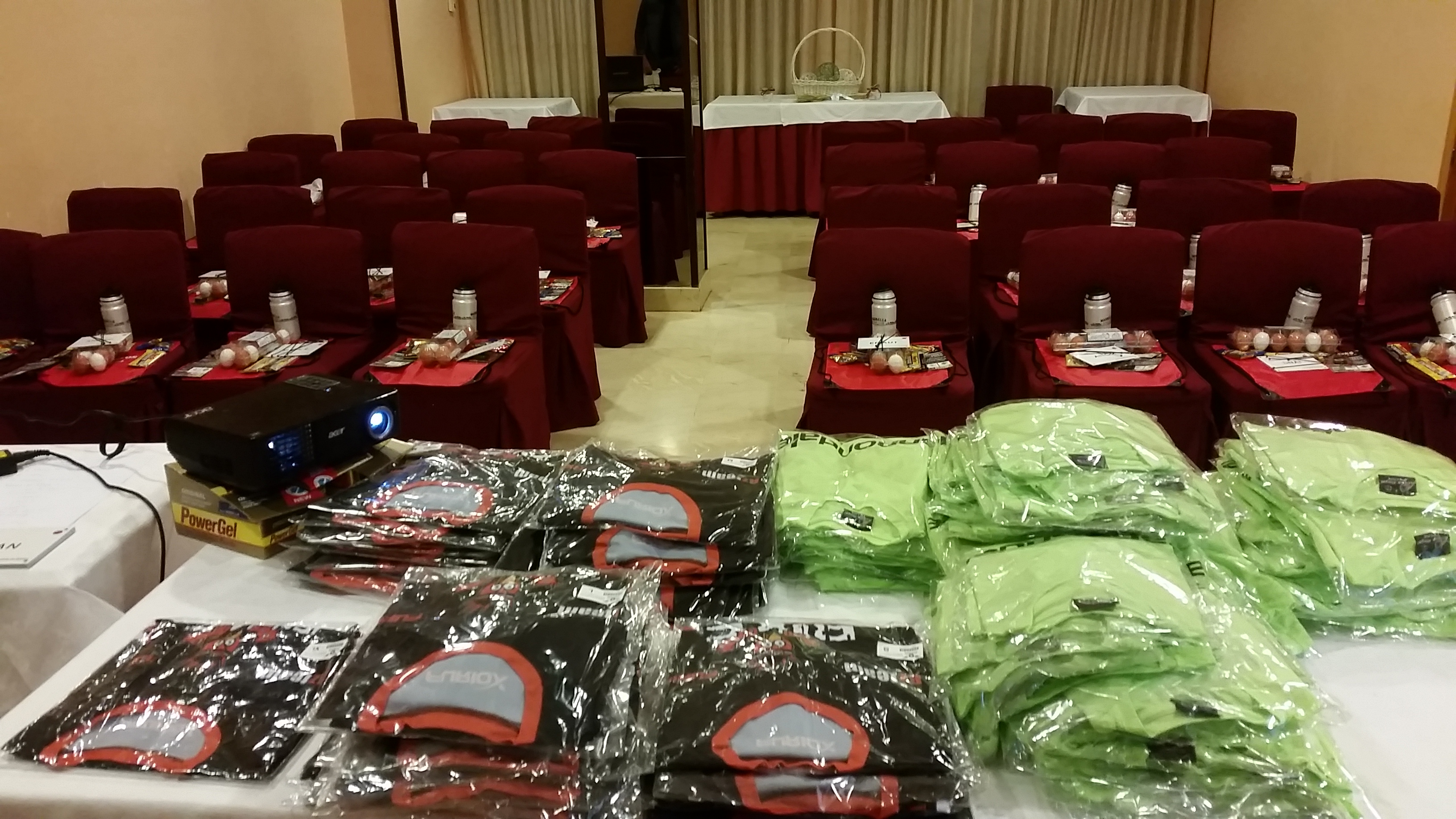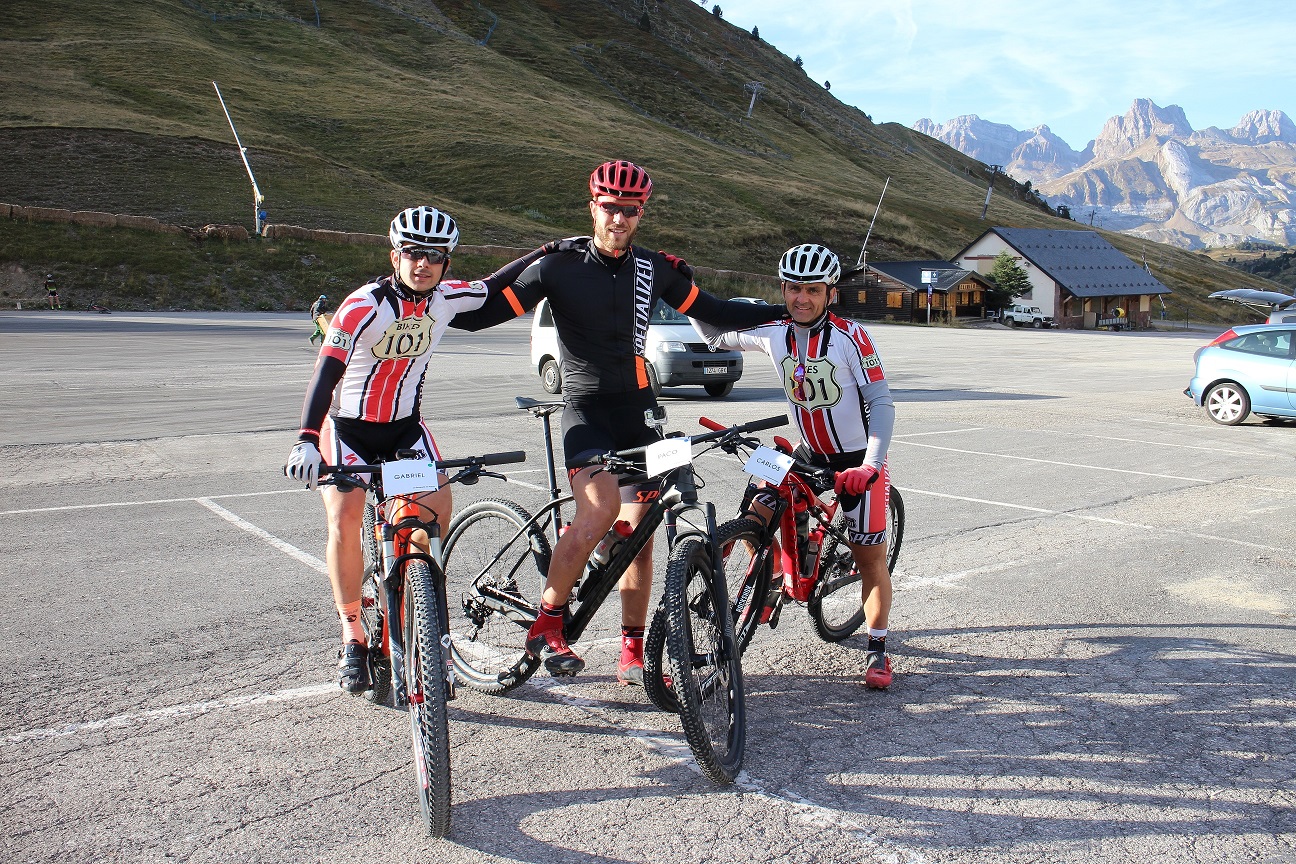 Cada biker en su silla tenía su dorsal nominativo, una mochila de Seguros Bilbao, una camiseta de Bikezona, una camiseta de Cannondale y Seguros Bilbao, una docena de huevos camperos de la Jacetania cortesía de nuestro compañero del Club de Montaña de Jaca, Josan Rabal, un botellín cortesía de Santiago de Marbella, geles y barritas de Powerade, geles, barritas y gorras Shimano cortesía de Ciclos Getxo e información de Tracks de Ordesa de nuestros amigos de la empresa Bikefriendly.