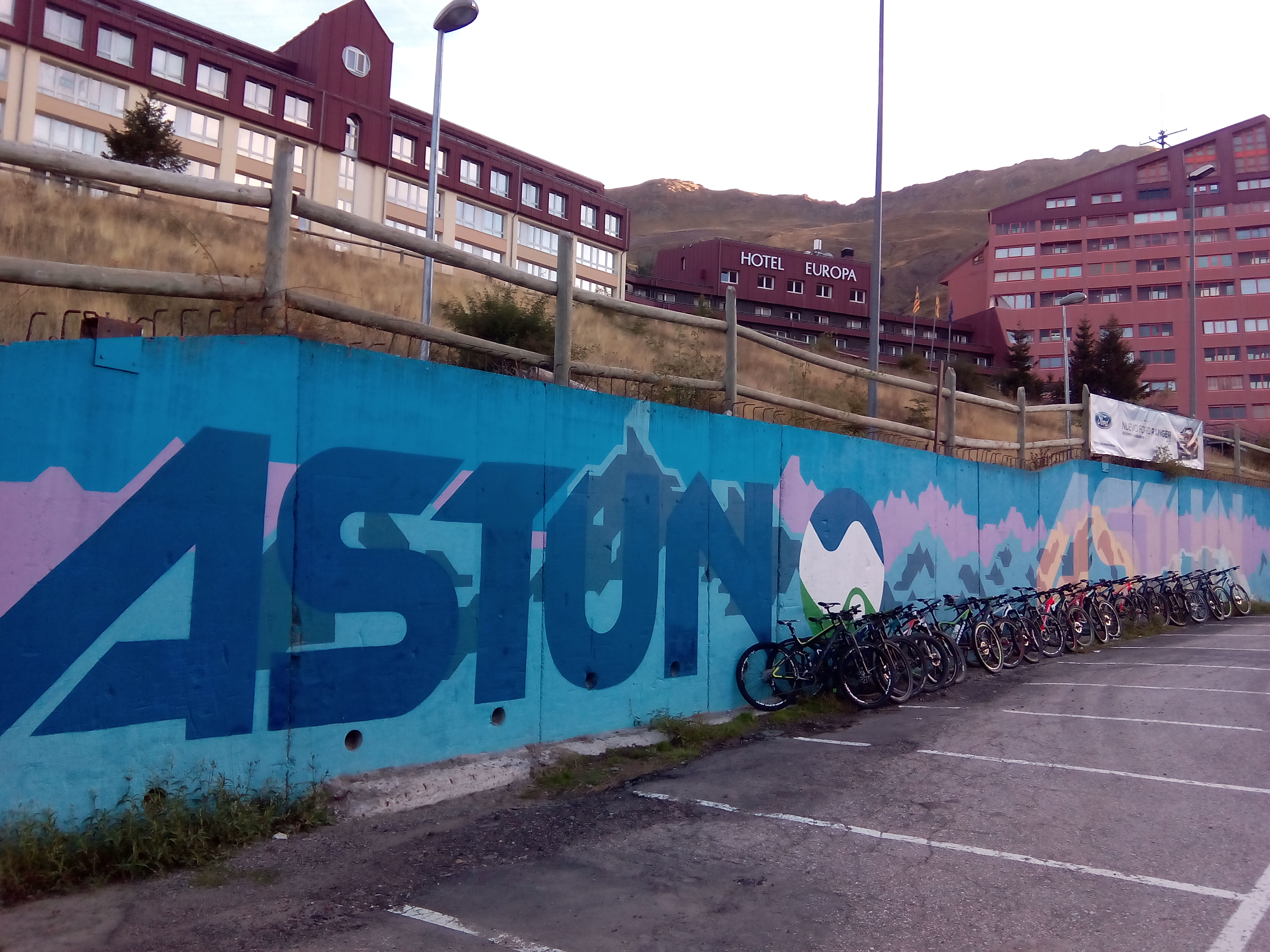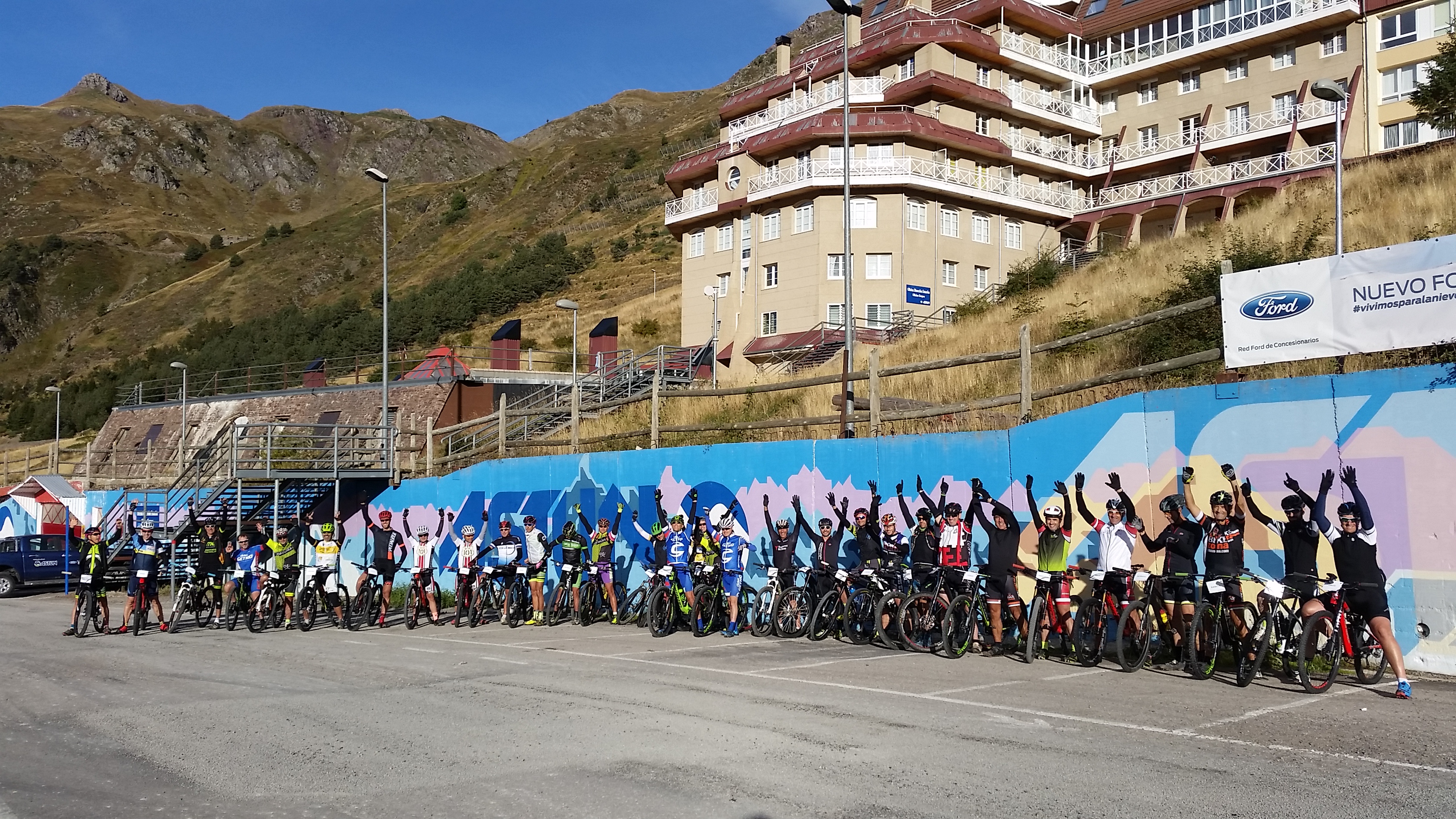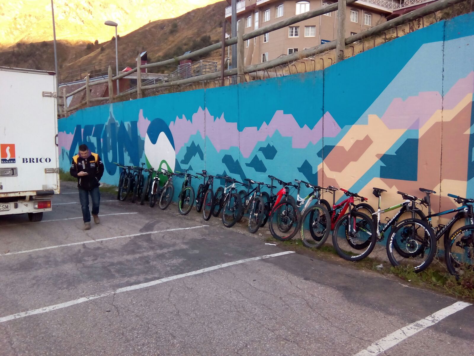 Amaneció con frío pero el día era fantástico y después de un buen desayuno, cogimos el autobús que nos llevaría a Astún. Con ligero retraso, pero dentro del horario previsto salimos de Jaca a las 8,40h y a las 9.10h ya estábamos en el parking de Astun, donde Cristóbal y Oscar nos habían preparado las bicicletas de maravilla.