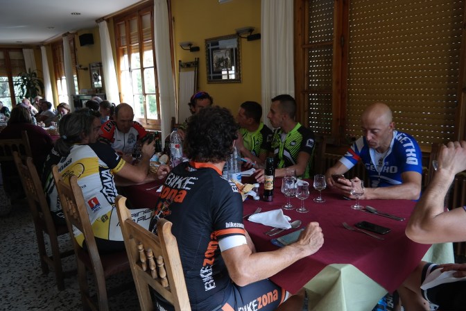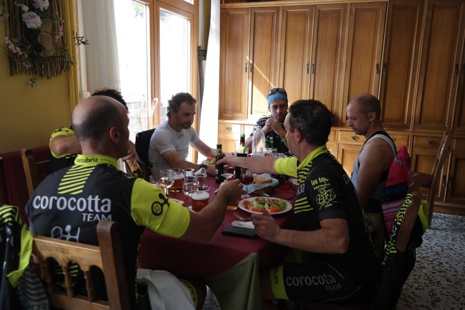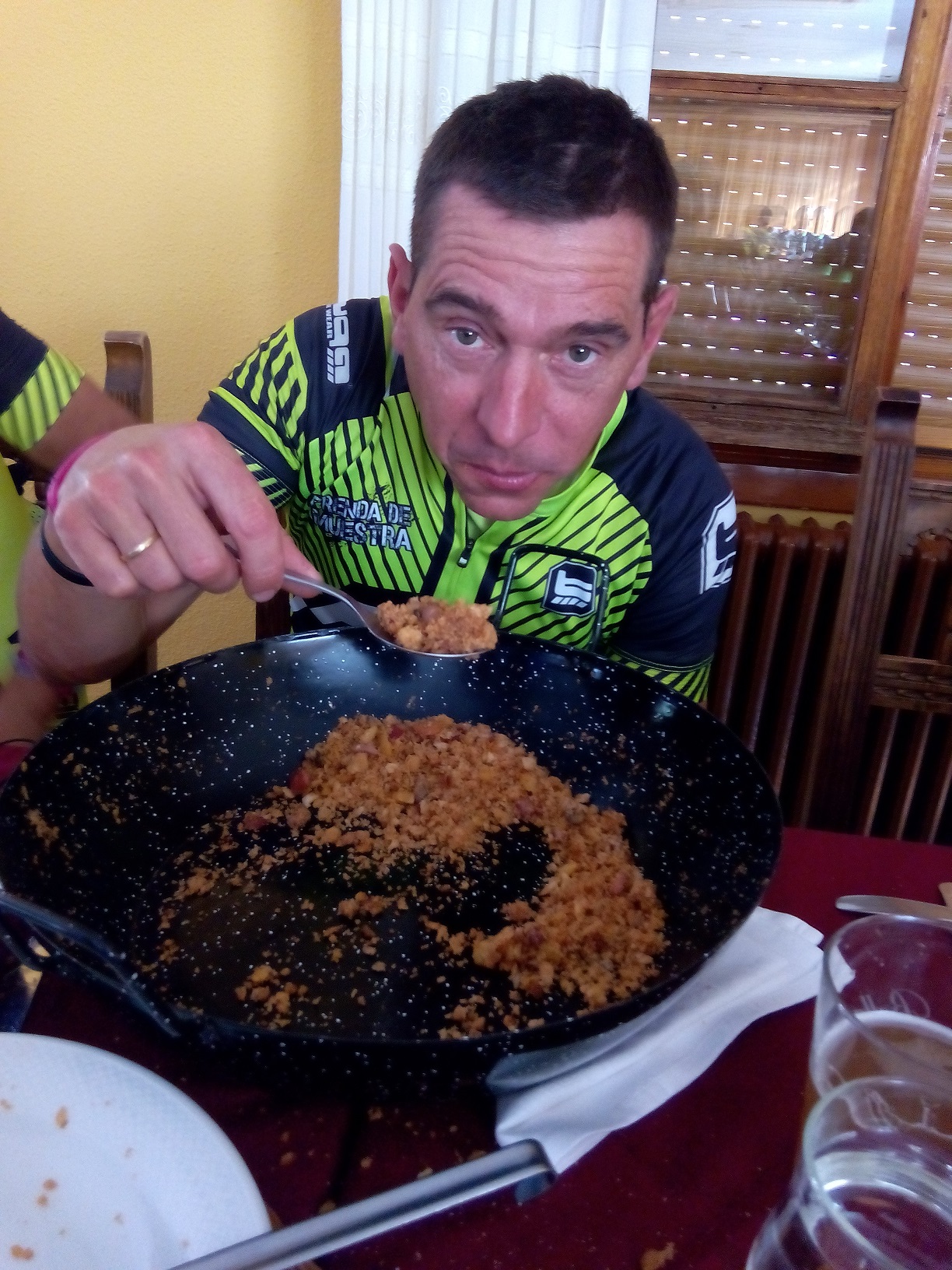 Pasamos por las localidades de Canfranc Estación, Canfranc, Villanua y Castiello de Jaca, donde teníamos previsto comer en el Mesón de Castiello unas migas especialmente cocinadas para el grupo. La verdad es que estaban exquisitas, y si no, que se lo pregunten a Juan Carlos de Kronos Bike.