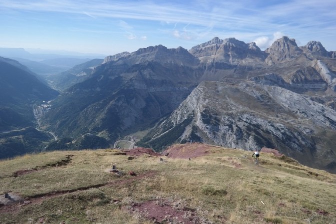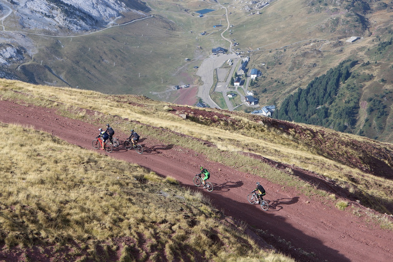 Después de dar los consejos previos a una de las bajadas más espectaculares de Pirineos, iniciamos el descenso hasta la pista que lleva a Canal Roya, para enlazar desde ese punto con el Camino de Santiago.