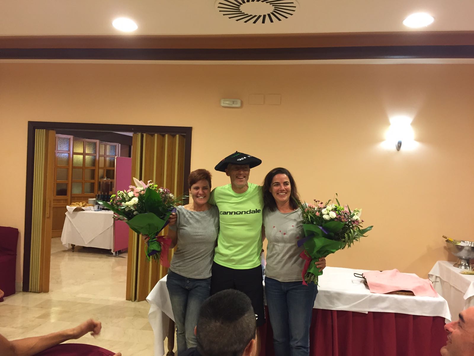 Después de una buena degustación de arroz preparada en la Arrocería del Hotel Oroel, el grupo agradeció a las chicas su trabajo y las obsequiaron con unas flores preciosas y a mí con una txapela que guardaré con todo el cariño del mundo. Muchas gracias equipo.