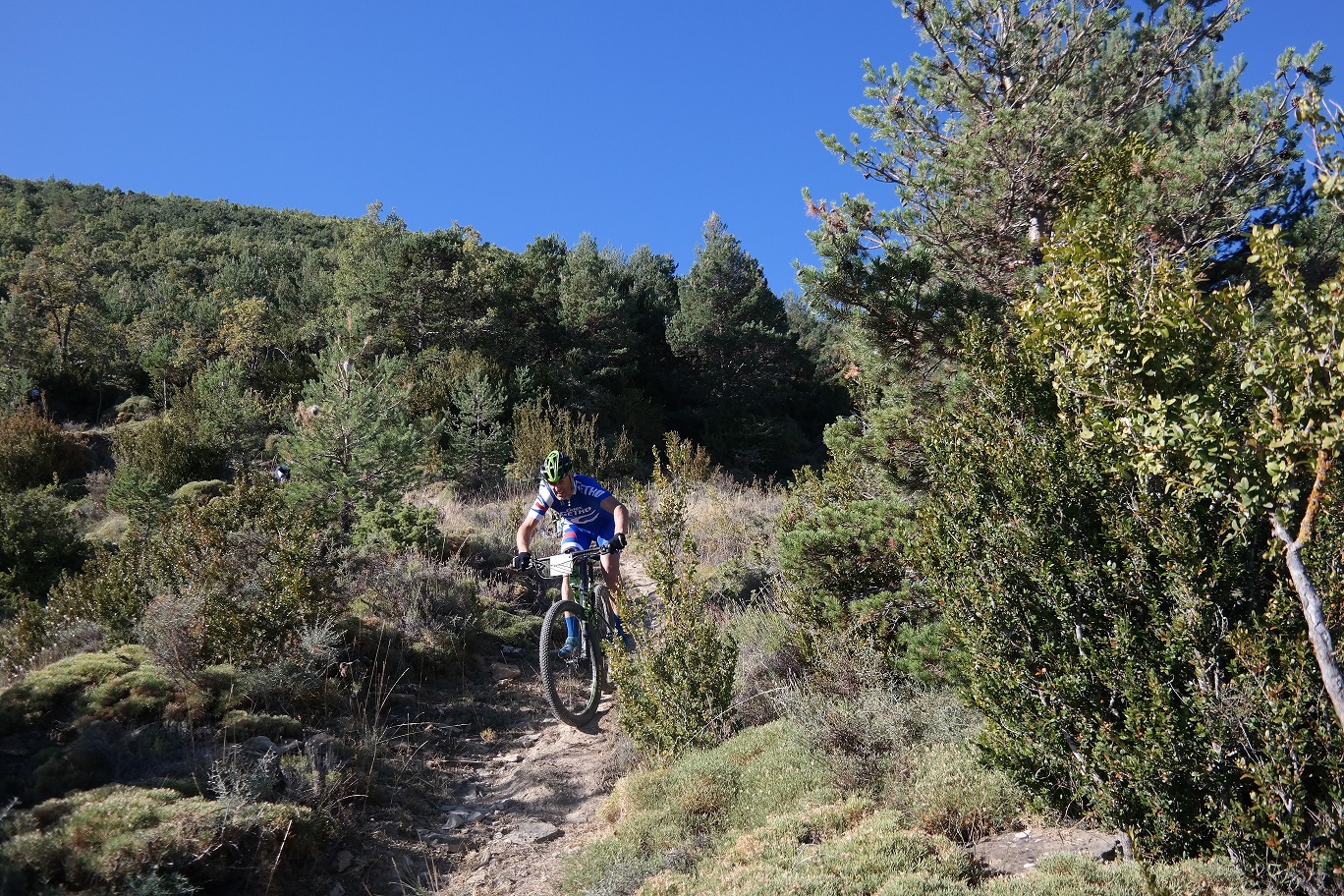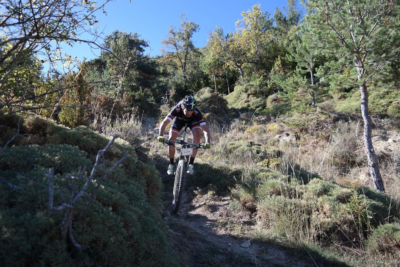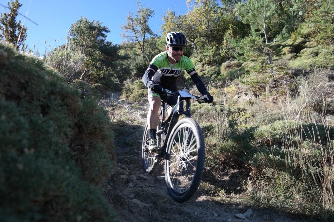 Una vez llegamos a la carretera, nos desviamos a la izquierda bajando por la senda DH0. El terreno estaba en perfectas condiciones por lo que el ritmo de bajada fue muy bueno, sorteando todos los obstáculos con solvencia. En los otros grupos al final nos enterábamos de algunas caídas, pero sin incidencias serias.