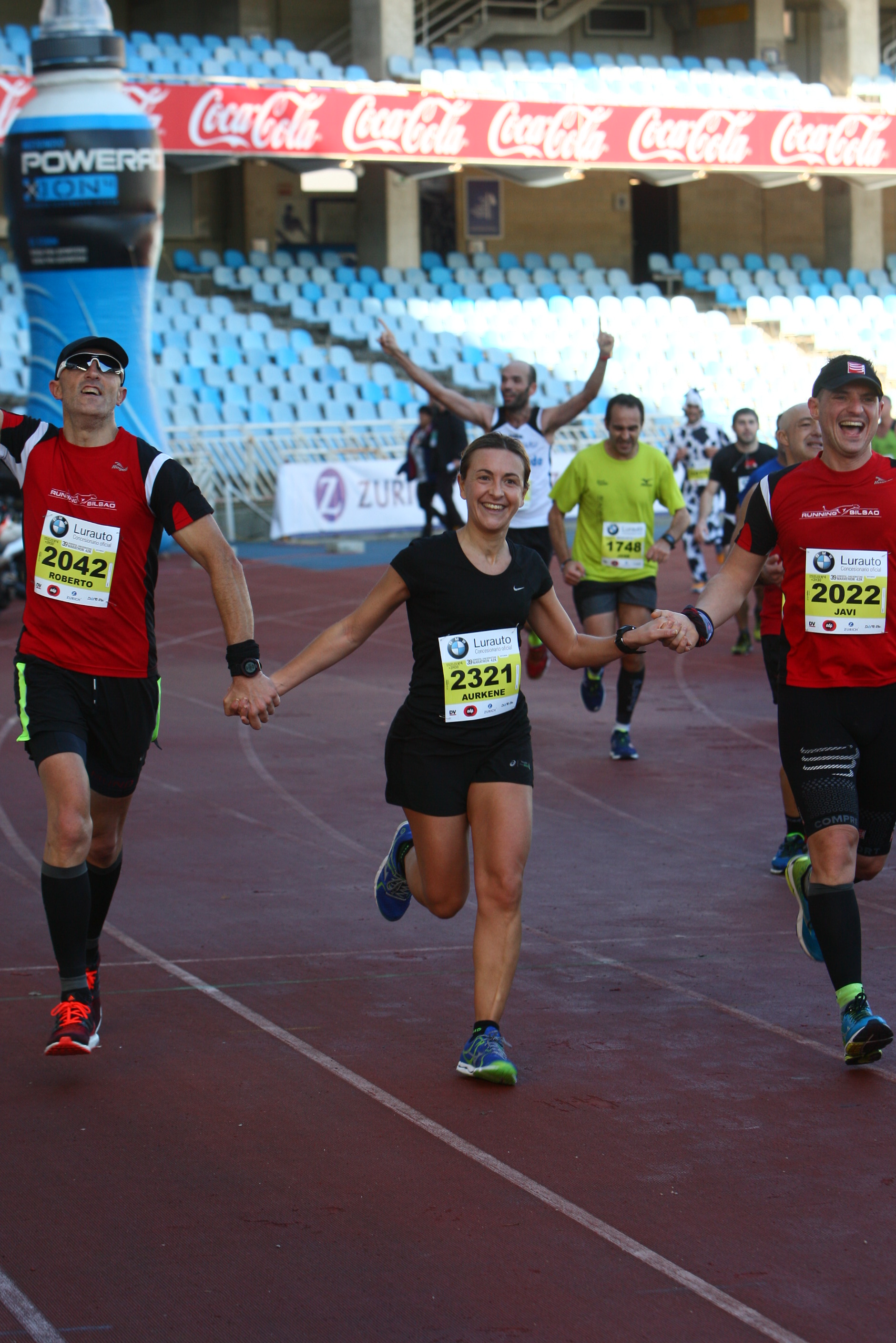 Sobre el km38, Aurke arranca dejándonos a Javi a mí, aunque enseguida Javi acelera poniéndose a su lado. En ese momento no puedo con mi vida y les veo constantemente pero no puedo enlazar con ellos hasta que en el último kilómetro con un último suspiro de vida y apurando toda mi energía al máximo acelero y justo en la entrada al estadio me puse a su lado. ¿Pensábais entrar sin mí?, les dije. Entramos emocionados juntos a meta después de 3h 29 minutos y 21 segundos de duro esfuerzo.