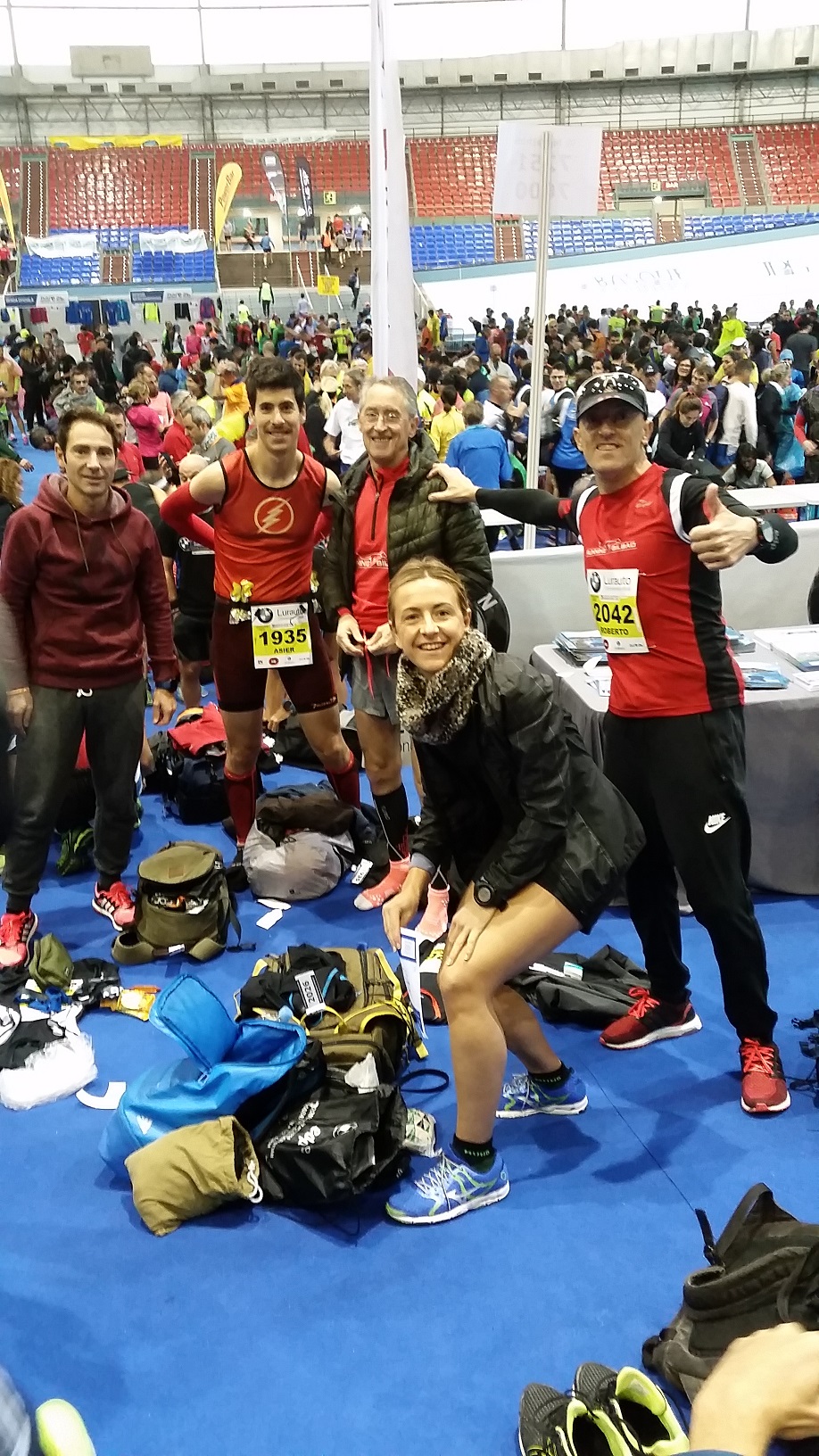 Que es una cosa seria no tengo ninguna duda, y si, estoy orgulloso de haberla finalizado, muy orgulloso. Pero también estoy muy orgulloso de la gente que tuve a mi lado durante la carrera y del resto del equipo que nos dieron todos los ánimos del mundo con sus mensajes. Orgulloso de Asier ya que a pesar de no acabar siempre ha demostrado ser un auténtico campeón. Otra vez será amigo, y si puedo te acompañaré. Orgulloso de Guillermo, una persona con una capacidad de trabajo increíble, por cierto, el primero en entrar en meta con un tiempo de 3h 26 minutos,¡¡¡¡ que grande!!!!. Orgulloso de Carlos que sufrió como un jabato para llegar a meta con unos dolores terribles en sus piernas, ¡¡¡que duro eres!!!. Orgulloso de Aurke, una pequeña, gran corredora, fiable al 100%, una ganadora. Orgulloso de Javier que a pesar de venir con una lesión hizo una carrera espectacular, ¡¡¡fantástico!!!. Orgulloso de Fernando que a pesar de no hacer el tiempo que quería en la media Marathon, hizo una buena marca y siempre está a un nivel muy alto.