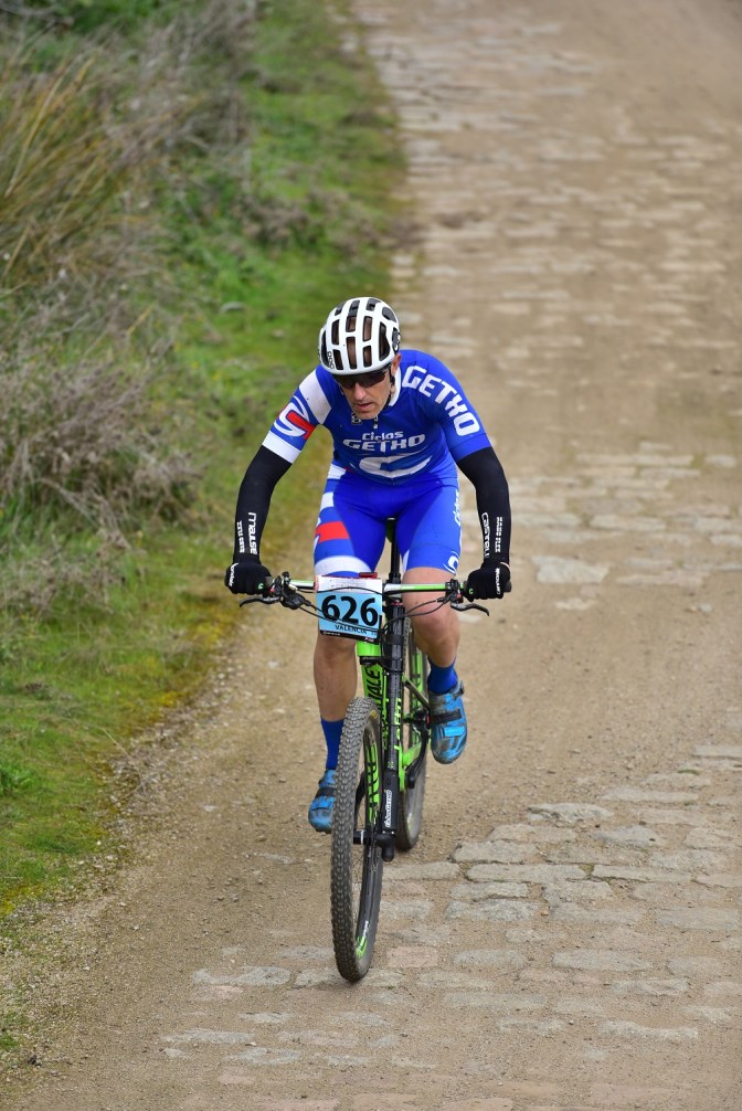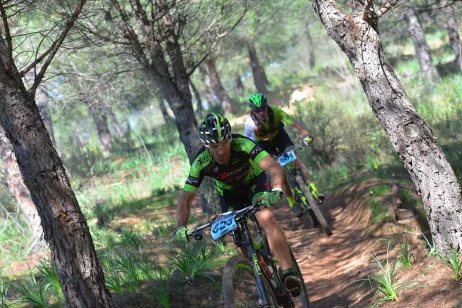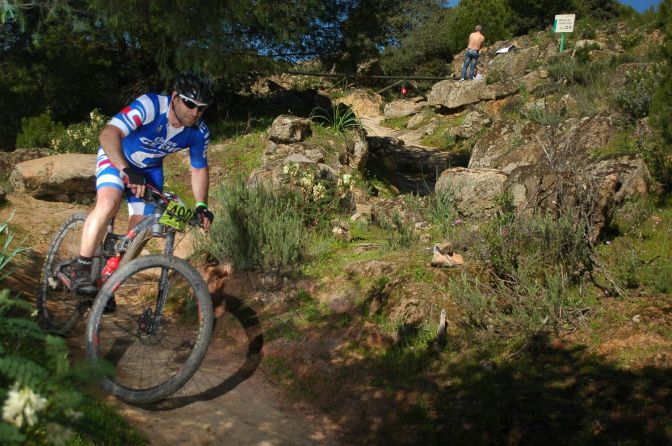 Me levanté con sensaciones un poco extrañas y más cansado de lo normal, pero empiezo fuerte a pesar de los numerosos atascos que se formaban en los diferentes rompe piernas que había al inicio de la etapa. Las subidas debíamos hacerlas empujando la bicicleta ya que el grado de inclinación era brutal. Esta zona nos llevó hasta el kilómetro 20, y es ahí donde iniciamos la primera gran subida de la jornada. Serían 10 kilómetros de subida dura pero entretenida. En ese punto ya veo que me cuesta coger ritmo y tengo que aflojar pensando en el resto de la jornada y de la vuelta, pero apreto todo lo que puedo antes de iniciar el descenso de Los Caracolillos, muy técnico donde no puedes perder la concentración ni un solo instante. En este punto Kerman enlaza conmigo y no puedo seguir su ritmo.
